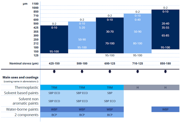 Sovitec’s Echolux® glass spheres are consistent in quality and composition and exhibit excellent durability. Various particle sizes and surface treatments (SBP ECO , SBP , WBP , TRM , BCP ) are available to enhance flotation, embedment and adhesion and to prevent agglomeration. The type of surface treatment depends on the type and thickness of the marking material.