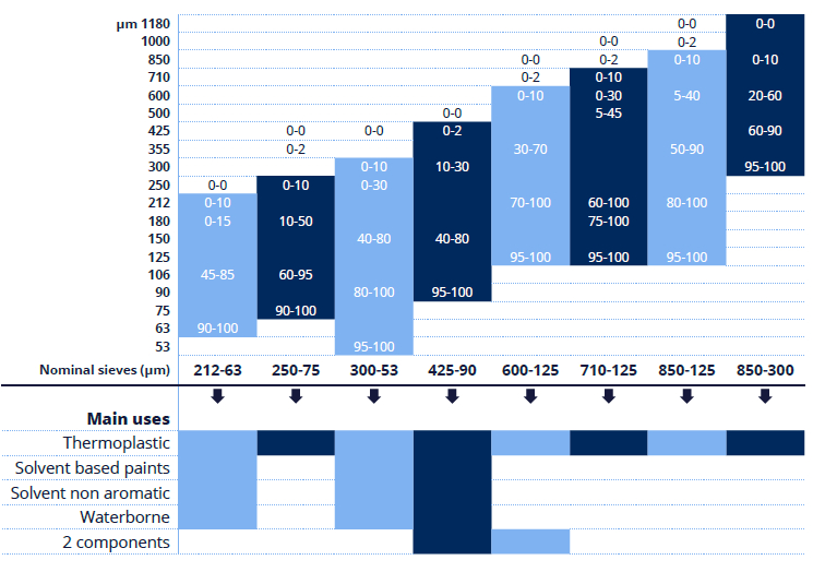 Starmixx® beads of Sovitec are typically used to blend with paint , thermoplastics or 2/3 components based on reactive systems. Starmixx beads are produced from recycled glass or from a virgin glass recipe in order to obtain a quality level above 80%.